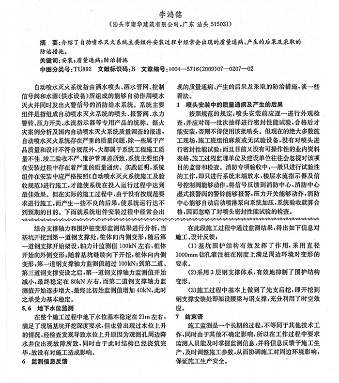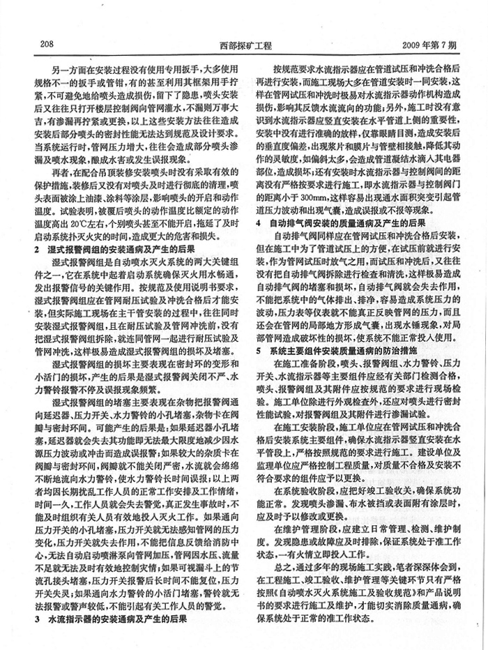 自动喷水灭火系统主要组件安装的质量通病及防治措施(李鸿铭)