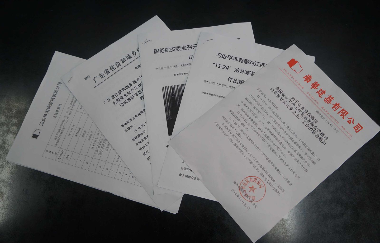 2016年11月24日,江西丰城发电厂在建项目发生冷却塔施工平台坍塌特别重大事故,事故发生后,国务院安委会召开全国安全生产电视电话会议,传达贯彻习近平总书记和李克强总理重要指示批示精神。省住建厅通报各地区,召开“贯彻落实紧急视频会议精神”会议,切实抓好建筑施工安全生产工作。