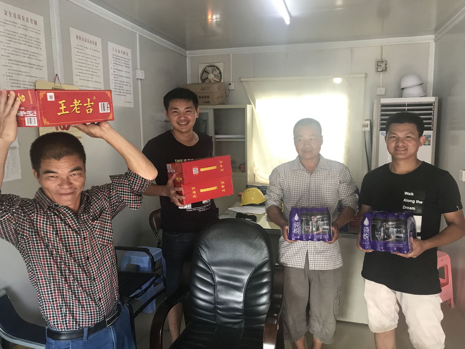 为确保工人们的身体健康和建筑工地的生产安全,切实做好夏季防暑降温工作,近日,公司工会组织开展“建筑工地送清凉”活动,向在建工程项目的施工作业人员送上凉茶等防暑降温物品,给在夏日里仍坚守岗位的建设者们送上了慰问与关怀,并对他们付出的辛勤劳动表示感谢。