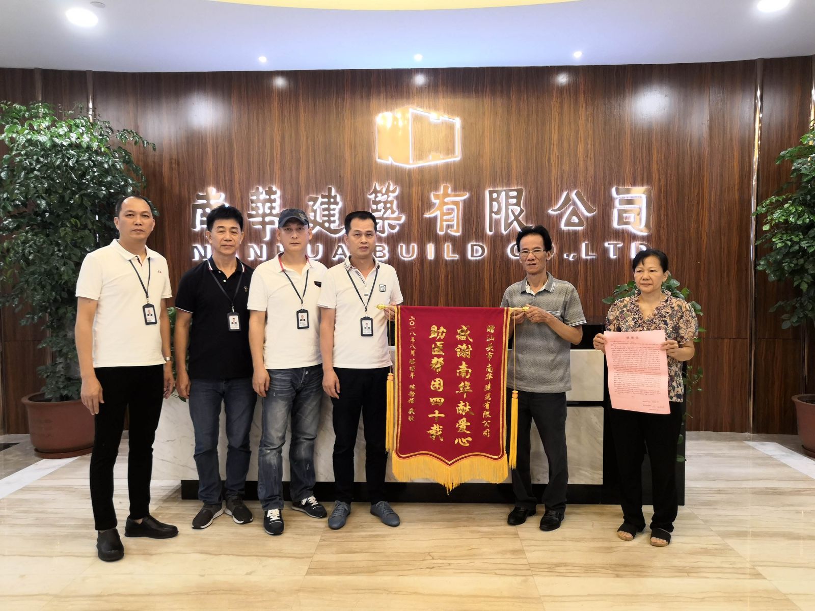 9月28日上午,汕头市南华建筑公司收到了一封来自已故员工亲属的感谢信,信中表达了其亲属对公司最真诚的谢意和最真挚的感激之情,并赠予一面公司爱心帮助四十年的锦旗。