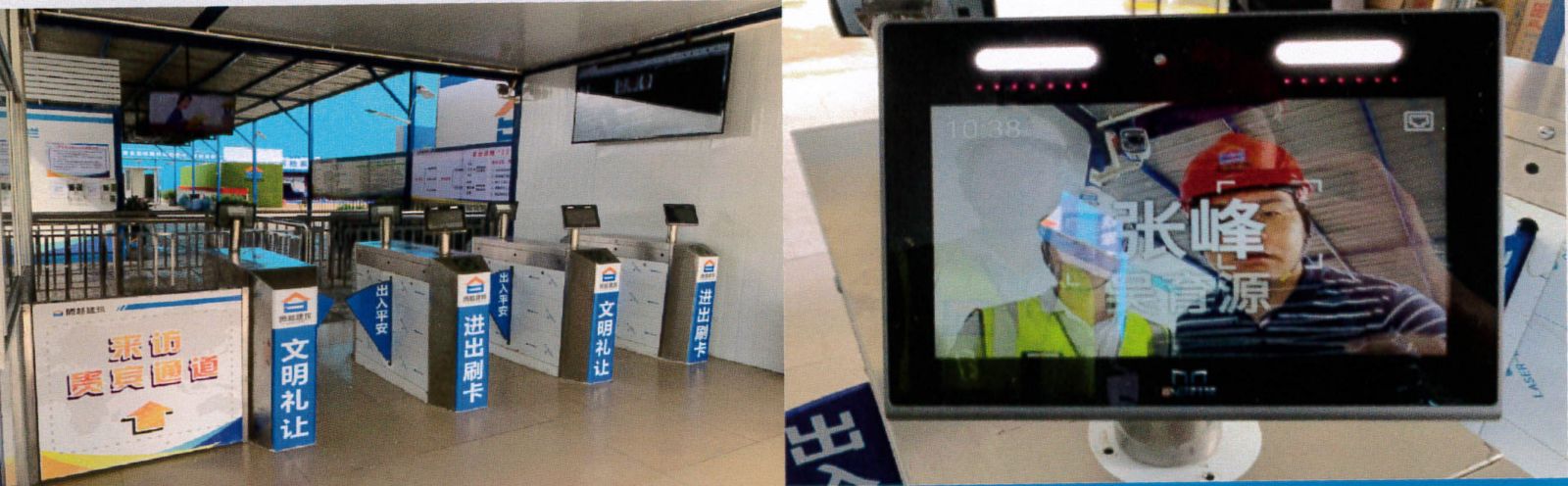 工地大门设置标准化设施,满足上下班高峰使用不会出现拥堵现场,改进多人脸识别系统(可同时设三个),达到25人/分钟。