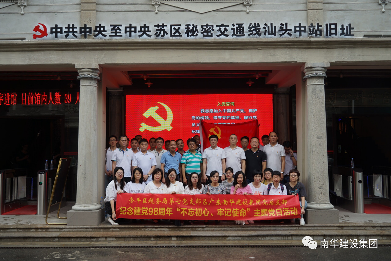 6月28日,广东南华建设集团有限公司与金平区税务局第七党支部组织党员到位于小公园街区的“中共中央至中央苏区秘密交通线汕头中站”旧址进行参观。从1930年底建立,到1934年红军长征前完成历史使命,经汕头的这条红色交通线,是上海党中央与位于赣闽腹地的中央苏区之间唯一一条未遭敌人破坏、始终连通的地下交通线。经汕头北上进入中央苏区,主要行经的就是东江地区(在土地革命战争时期,包括今日东江、韩江流域的绝大部分地区)。在中共建党和大革命时期,这里农民运动蓬勃,国民革命军又曾两次东征,这里成为全国农民运动的典范、中国大革命的策源地。