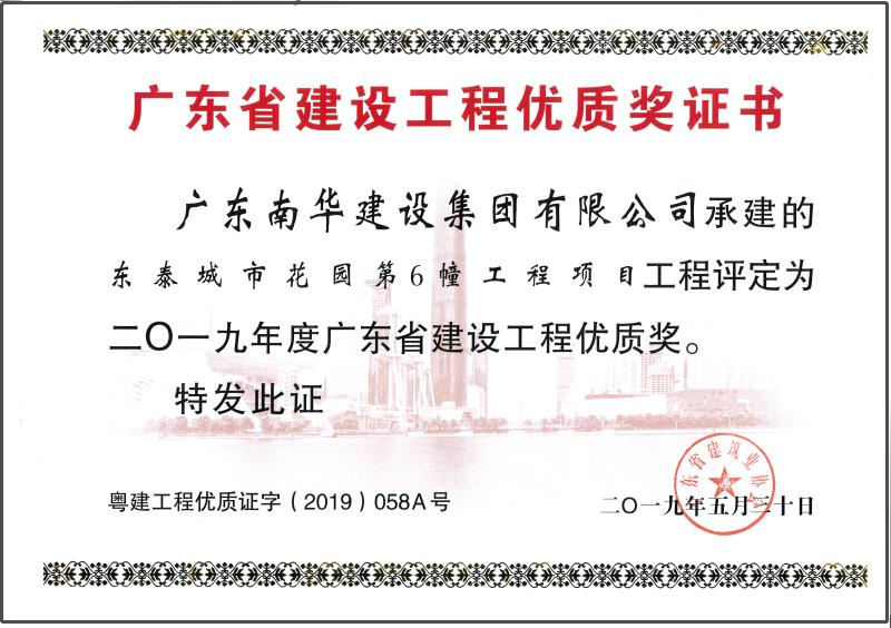 我司一直坚持“科学管理、创时代精品”的理念,不断创新思路,加强对精品工程施工质量的把控,严格每道工序的检查验收和监督管理,一步一脚印,秉持匠心,精工雕琢每一寸建设空间,为美好城市建设和幸福居住环境留下南华的印记。近日,由我司承建的东泰城市花园第6幢项目获2019年度“广东省建设工程优质奖”,在争先创优的印记上又留下闪亮的一笔。