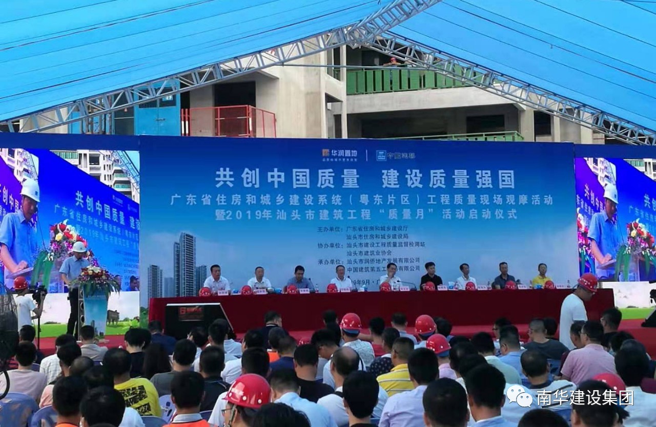 根据 《广东省住房和城乡建设厅关于组织开展2019年“质量月”系列活动的通知》、汕头市住建局《汕头市住建局关于举办2019年汕头市建筑施工“质量月”现场观摩活动的通知 汕住建质通〔2019〕8号》的通知,为提升各项工程质量安全生产水平,我集团公司派相关人员参加市住建局组织召开2019年9月5日汕头市建筑在“汕头九里怡园二期项目”(全省住房城乡建设系统“质量月”粤东片区工程质量现场观摩项目)建筑工地组织召开2019年汕头市建筑施工“质量月”活动启动仪式暨现场观摩会。