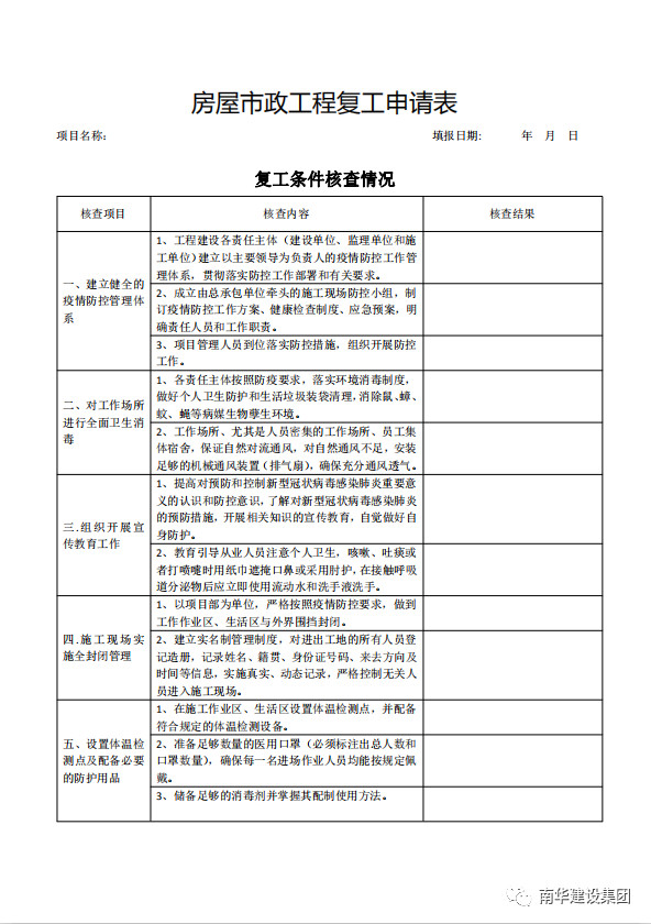 关于房屋市政建设工程春节后复工申请的通知