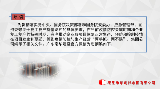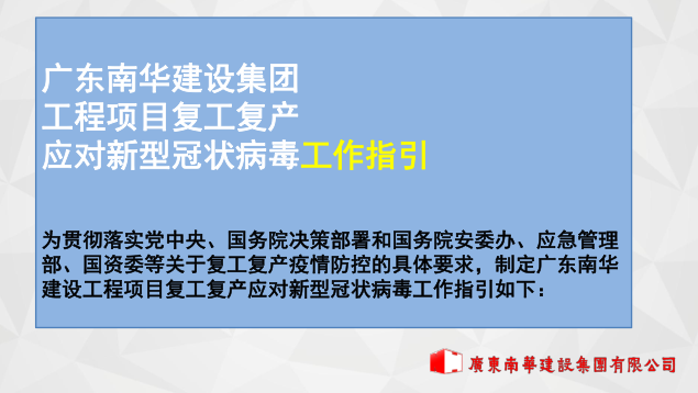 广东南华建设集团有限公司复工复产应对新型冠状病毒工作指引