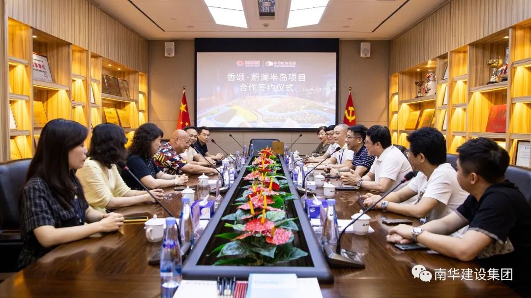 2020年8月5日,南华建设集团与广西远道集团在公司会议厅举办了“香颂·蔚澜半岛”项目战略合作签约仪式,远道集团刘建发董事长,南华建设集团林锦平董事长、李鸿铭总经理、梁小菲女士等人出席签约仪式。