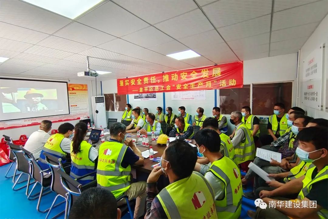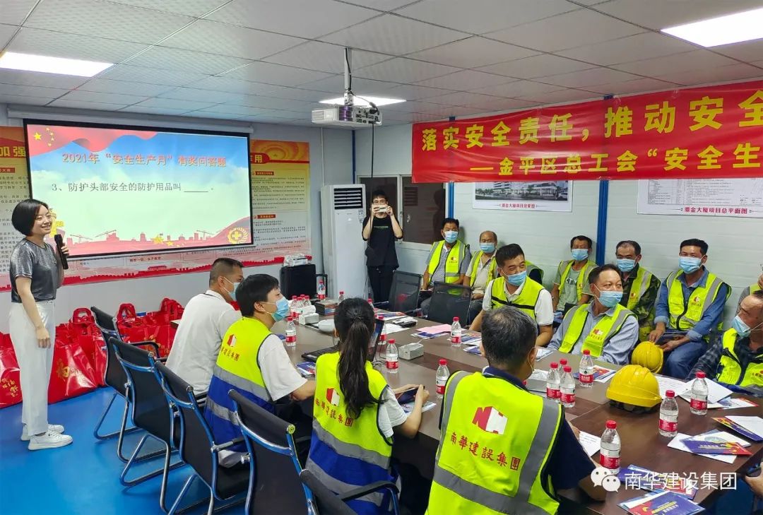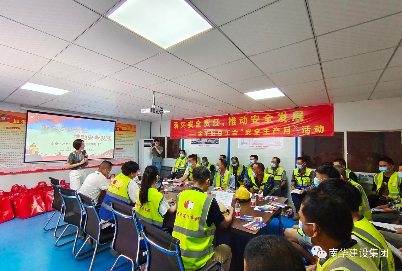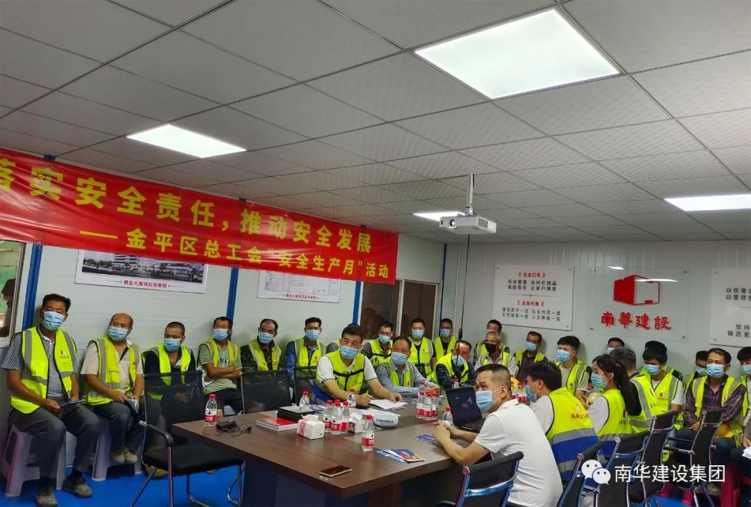 6月16日,金平区总工会以“落实安全责任,推动安全发展”为主题,在集团公司潮金大厦项目部开展2021年“安全生产月”活动,区工会、集团公司工会及项目部管理人员、工人代表等参加活动。